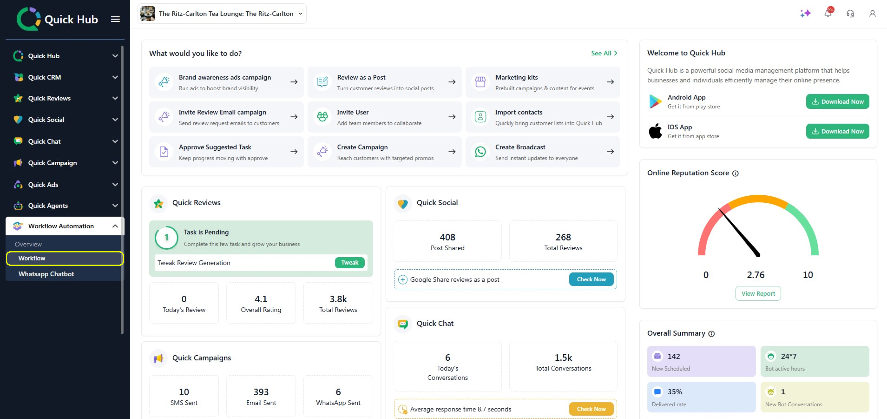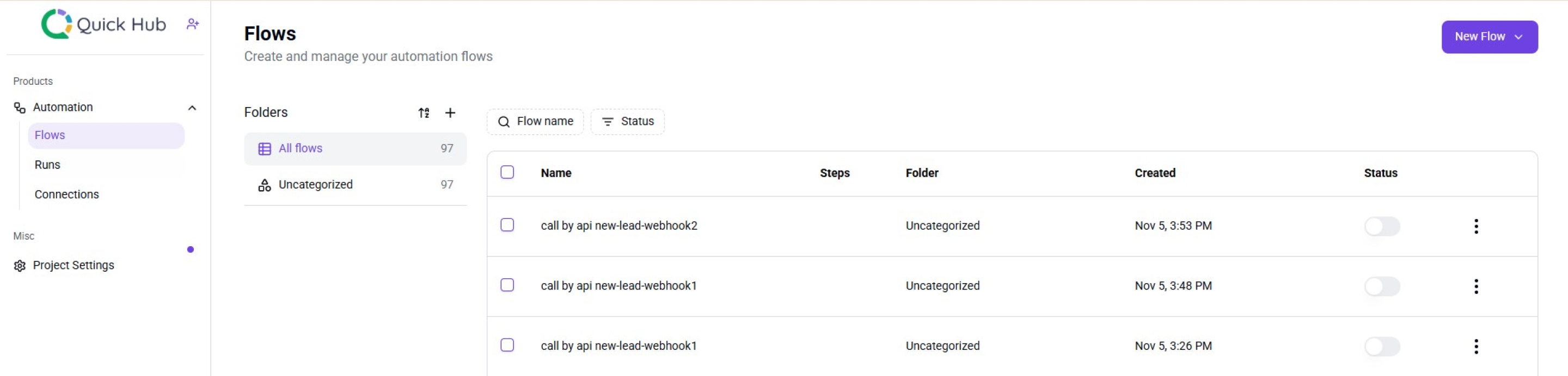 Quick Hub’s Workflow Automation lets you automate repetitive tasks and streamline processes with ease. Turn complex workflows into simple, time-saving actions—all in just a few clicks. To create workflows for Quick Hub Automation, follow the steps below.