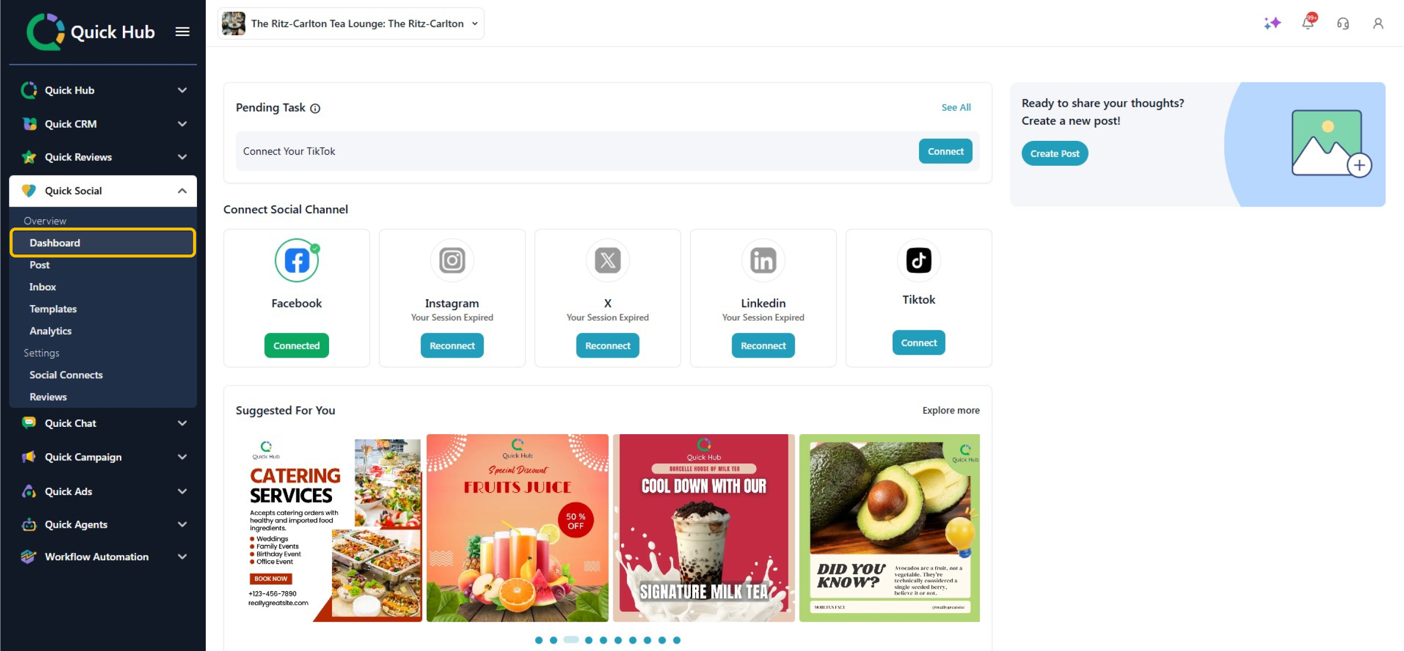 How to Connect Social Channels and Create, Schedule, and Edit Posts on Quick Hub