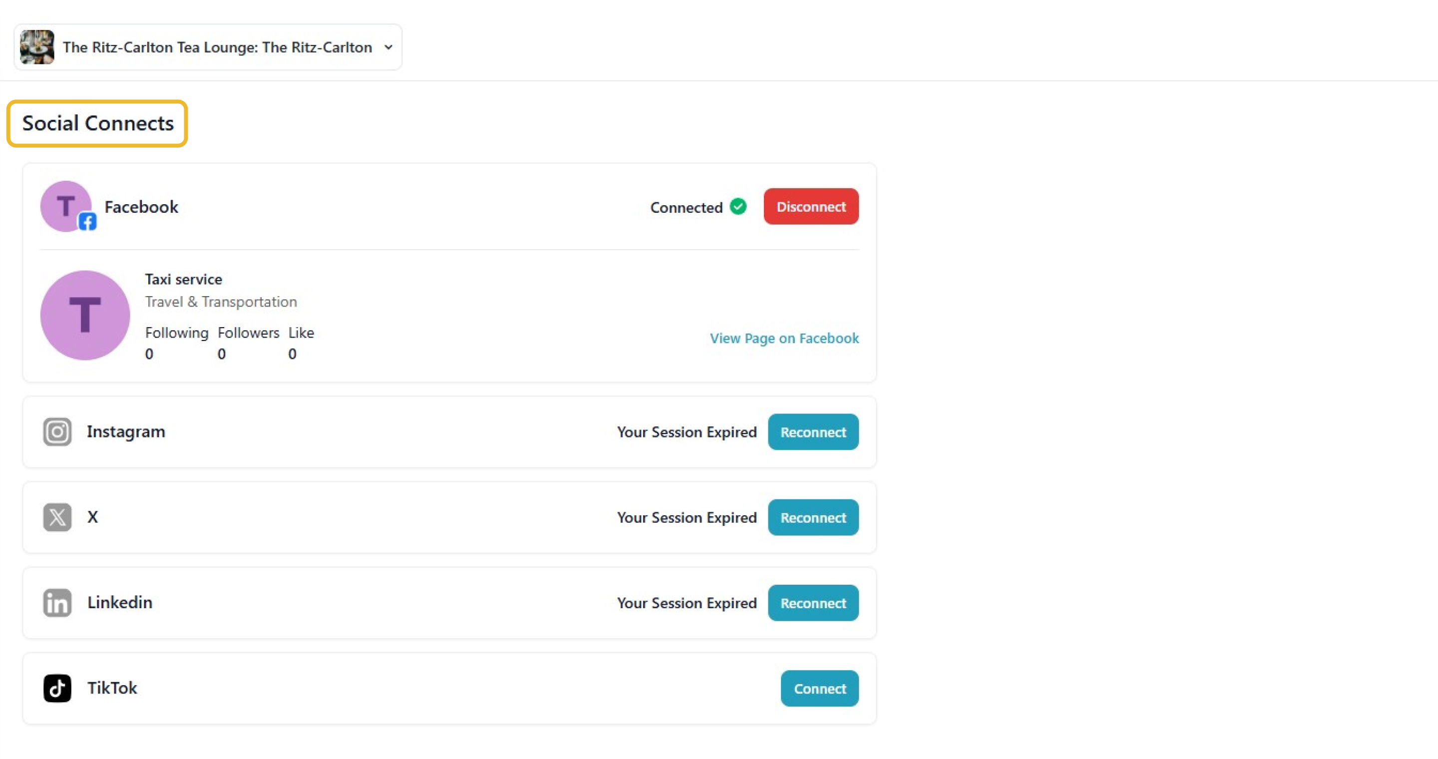 The second way is from ‘Social Connects’. Click the ‘Social Connects’ tab, where you can connect platforms like Facebook, Instagram, X, and LinkedIn.
