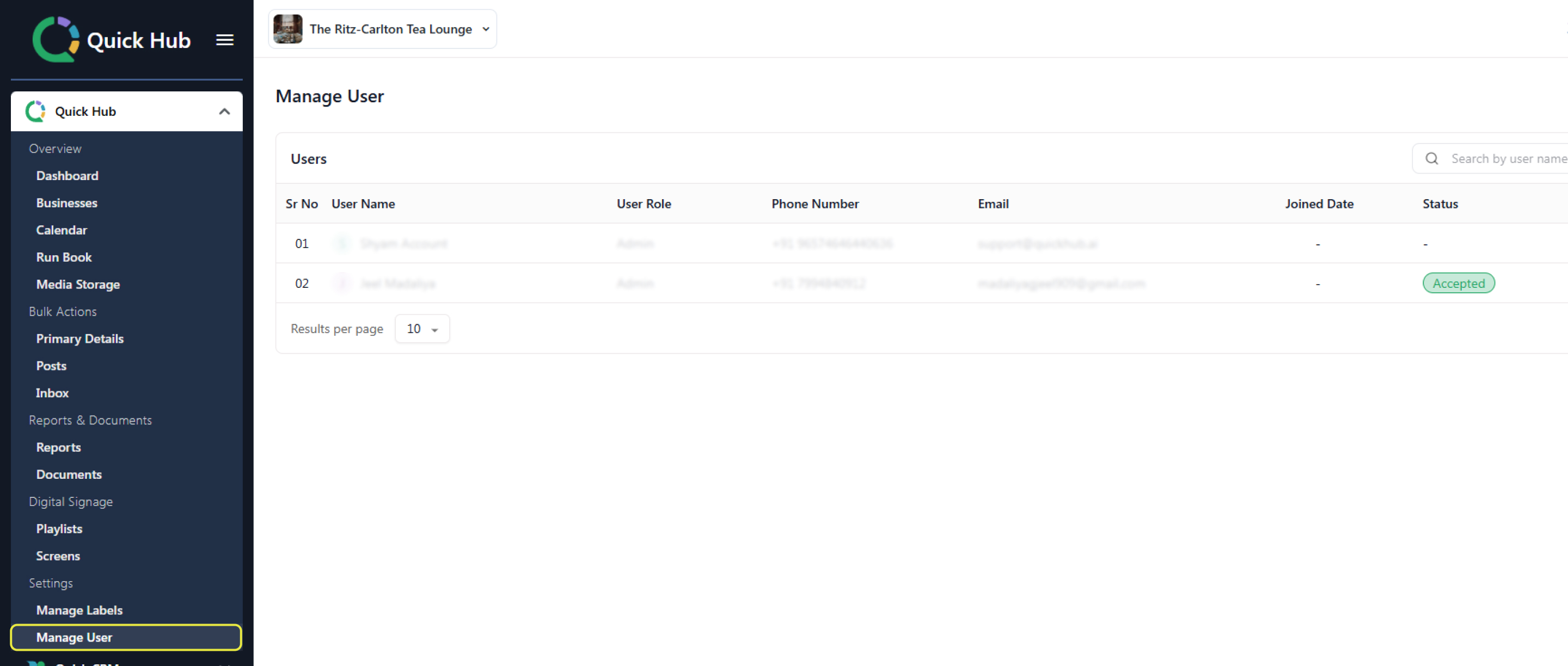 You can add users or team members to Quick Hub and assign their roles for either a single location or multiple locations.