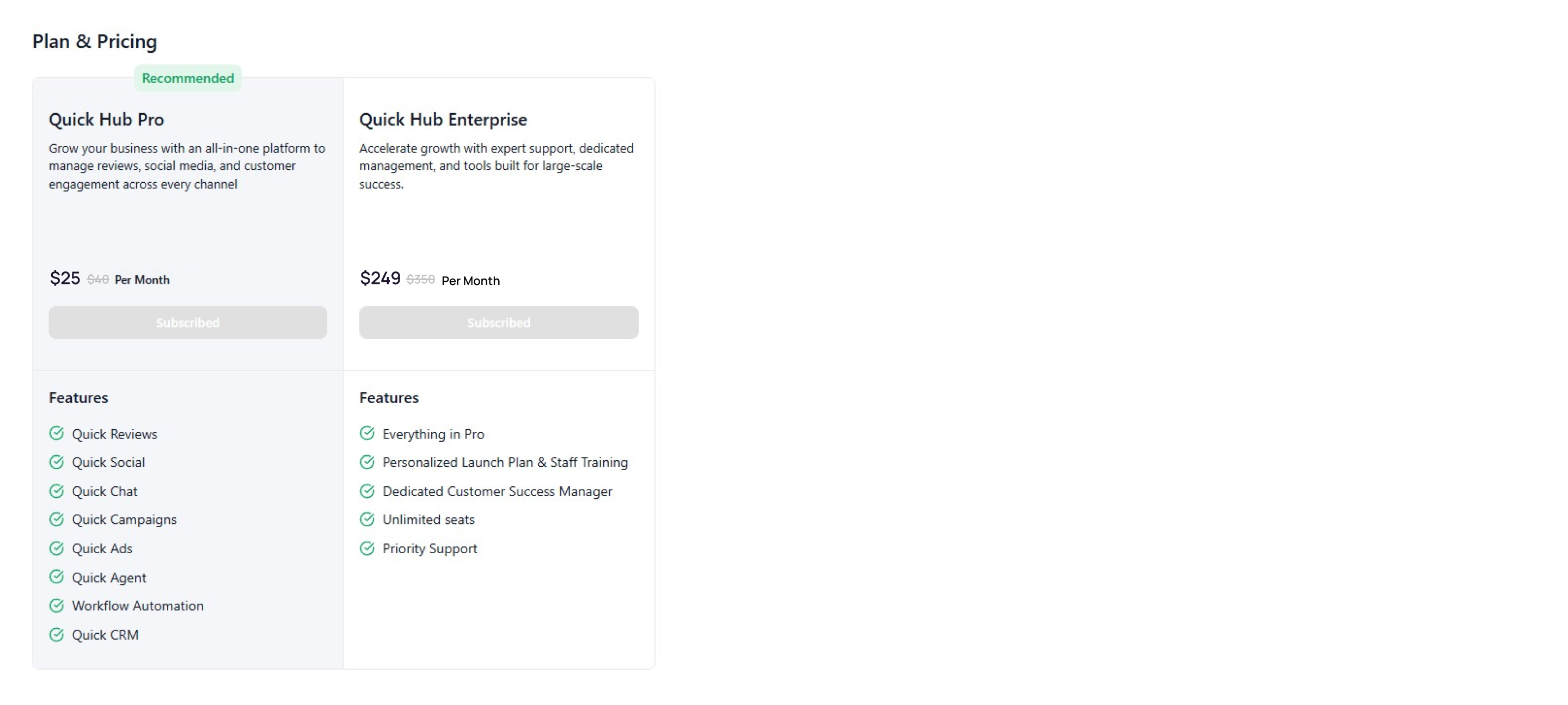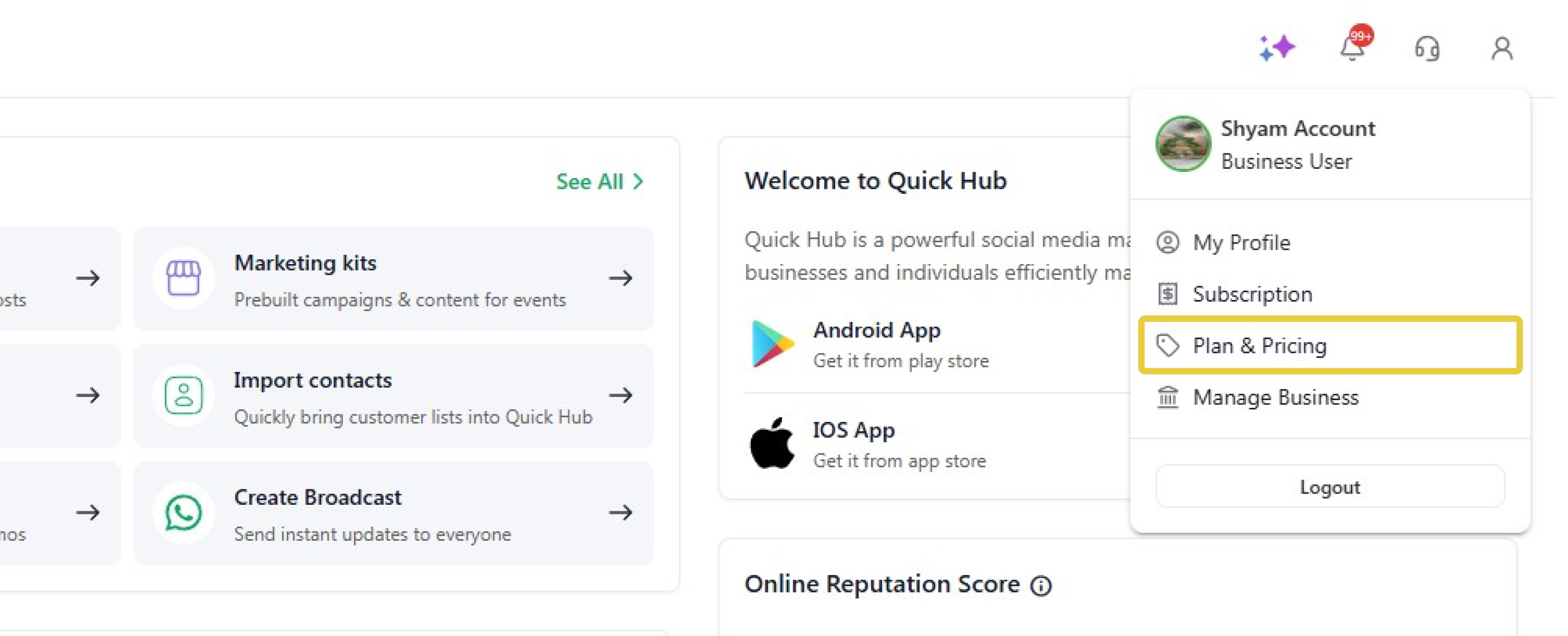 - Click 'Offer & Pricing' to view the special offers and products offered by Quick Hub.