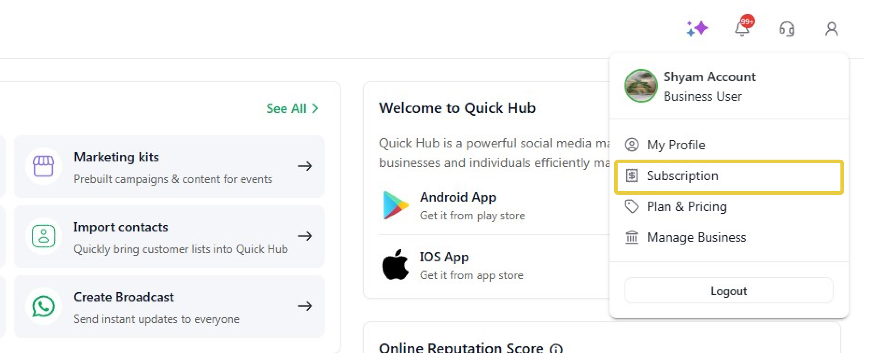 - Go to Quick Hub.