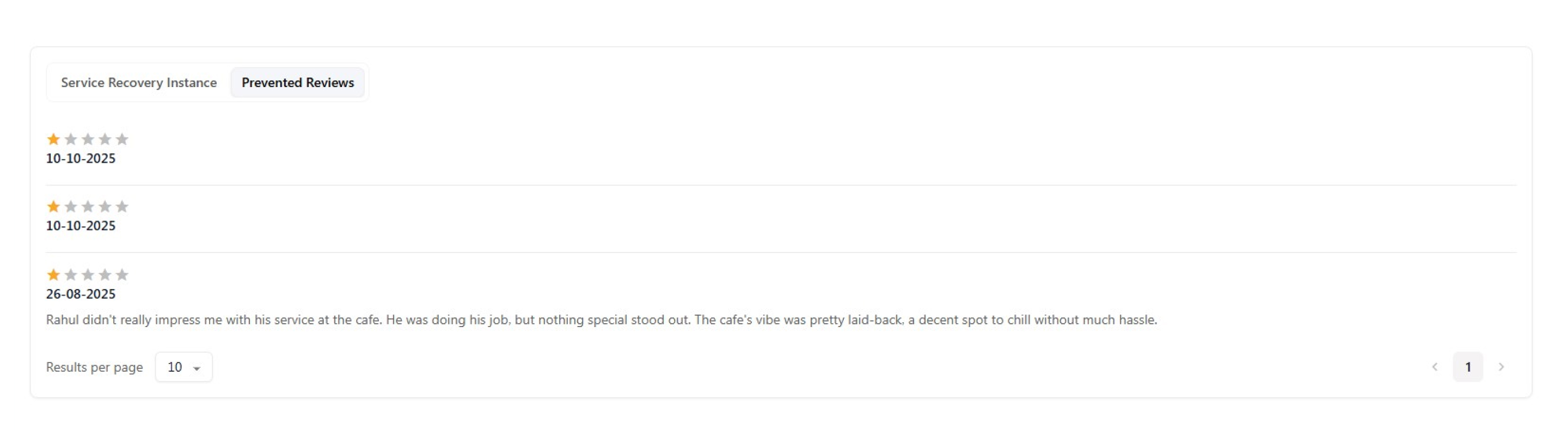 - Once they submit their feedback on Google, it will start reflecting under the Prevented Reviews tab.