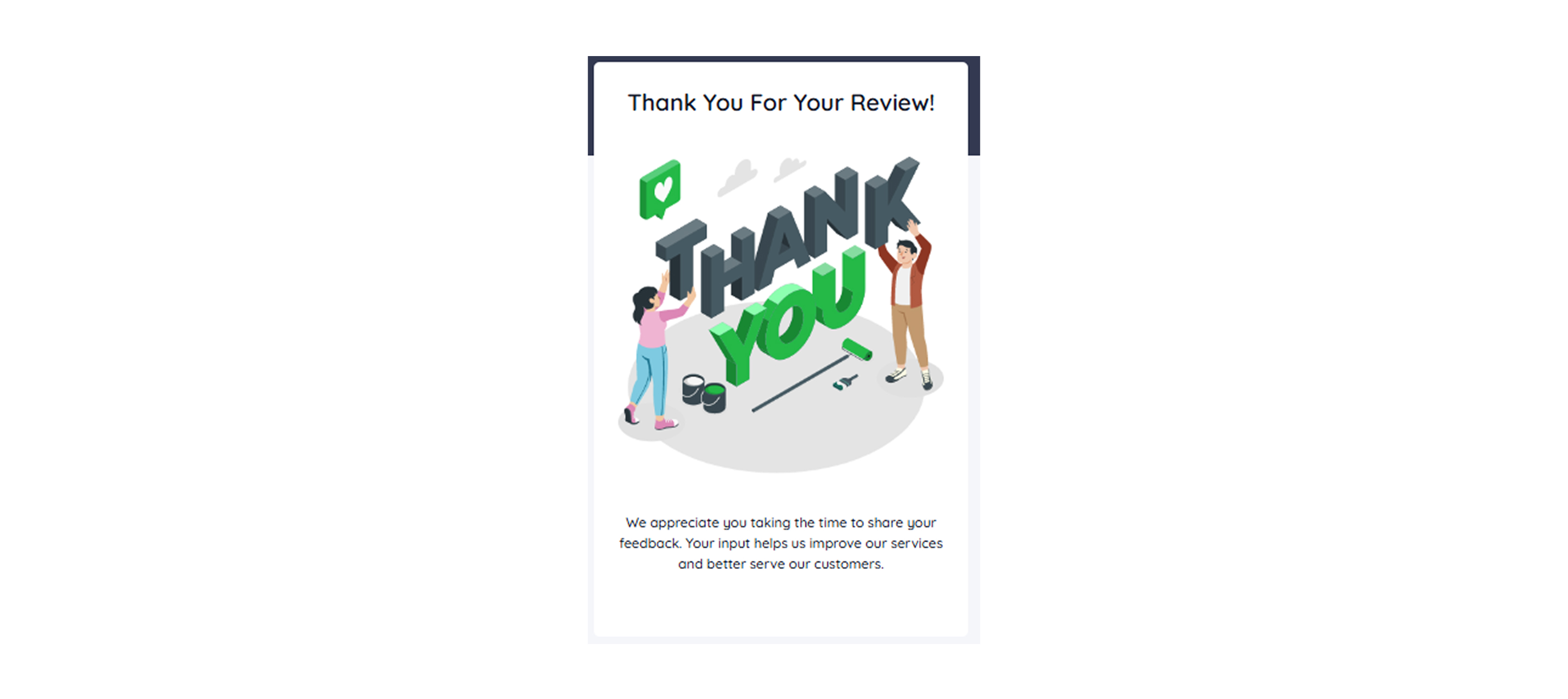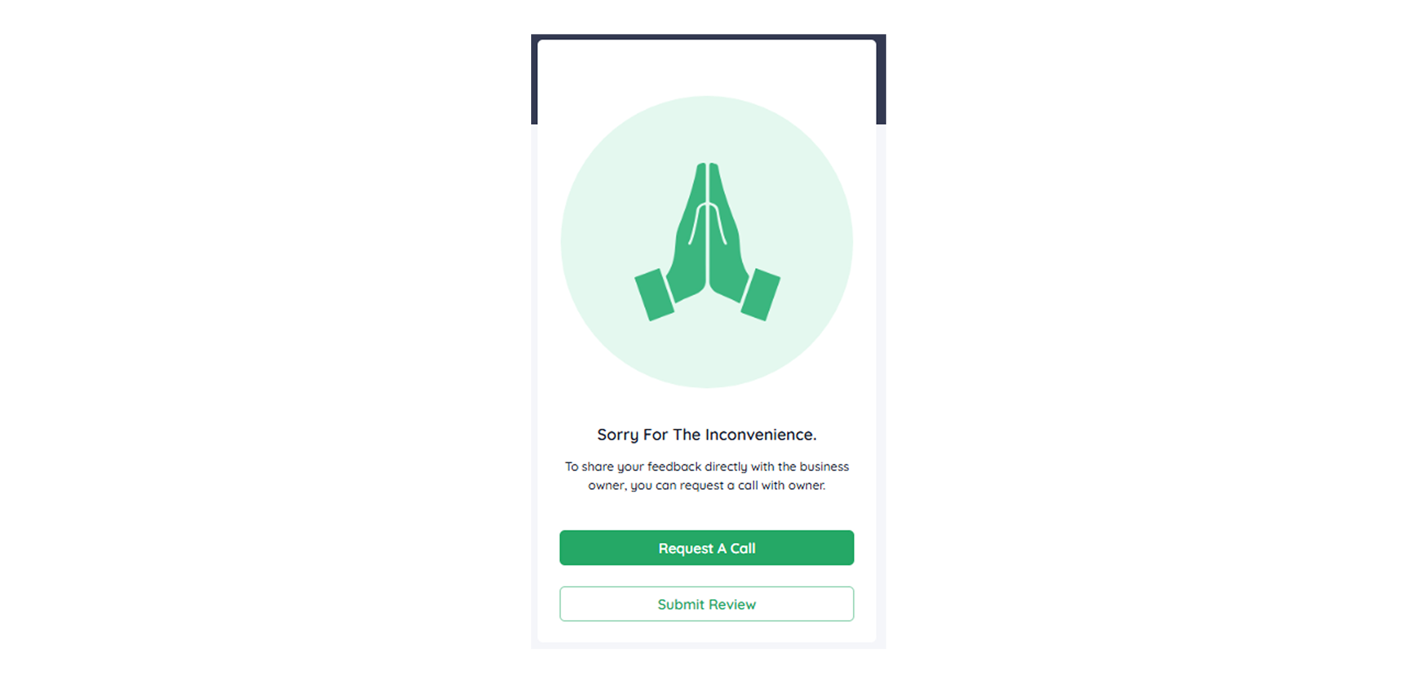 - If a customer gives you a rating lower than 3, they will be directed to a page that asks them to either Request a Call or Submit the Review.