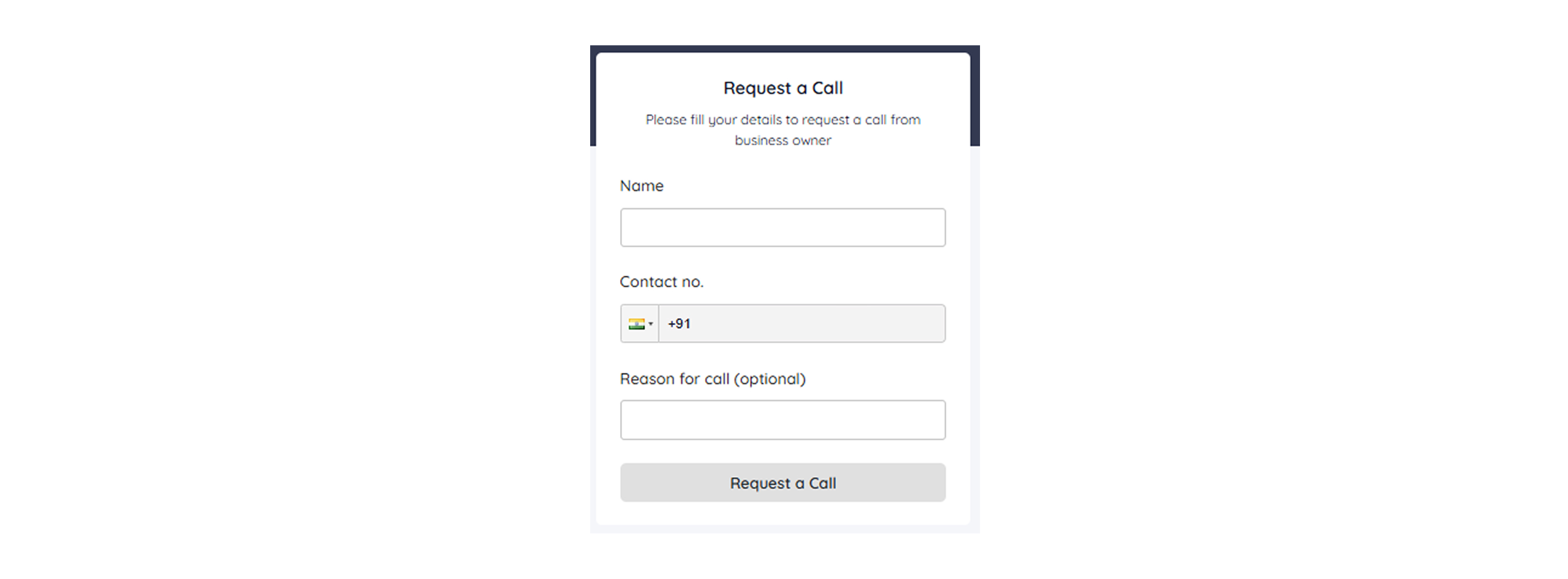 - If the customer clicks Request a Call, they will be directed to a page where they need to enter their details, such as name, contact number, and the reason for the call.