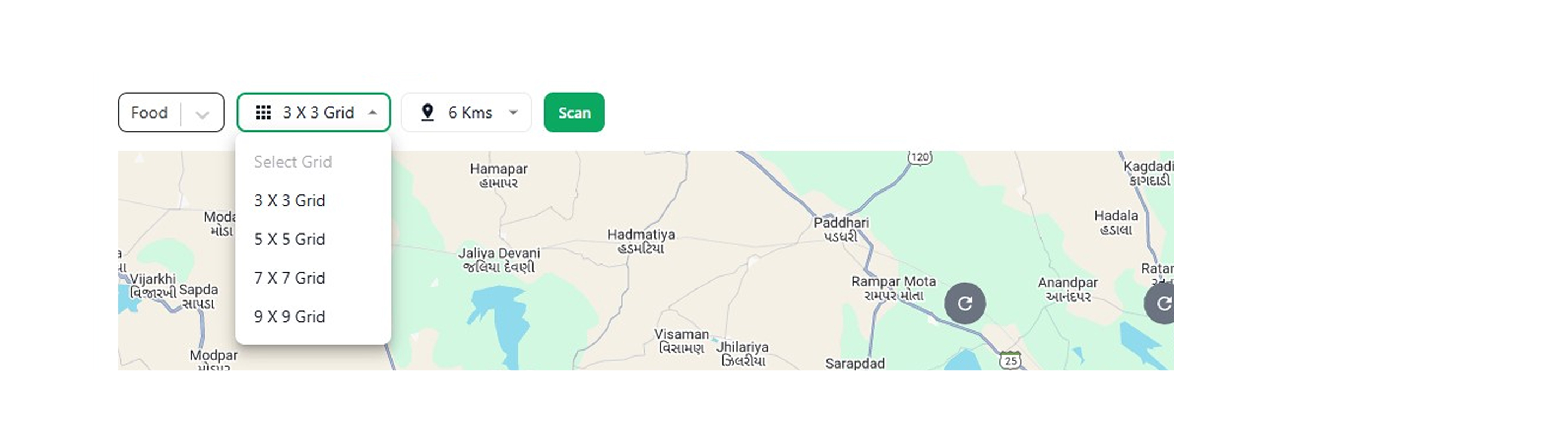 - On this screen, you can select a keyword related to your business from the Top Keyword section. You can also define the grid and set the radius (in kilometers) to view competitors within that range.
