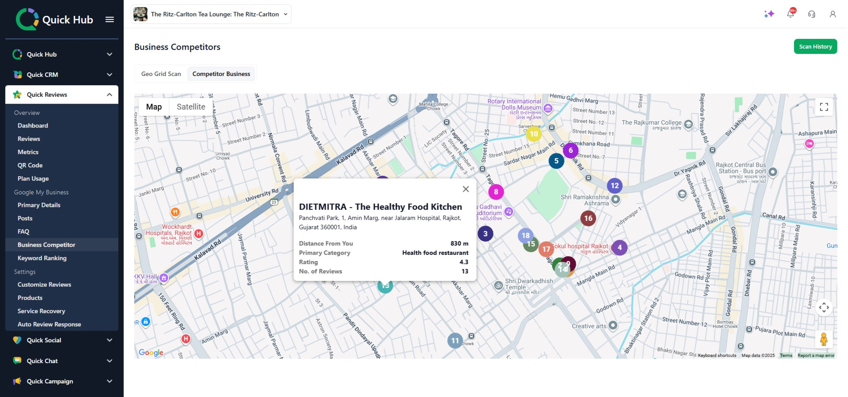 - Click the Competitor Business section to view their business details, such as location and ranking.