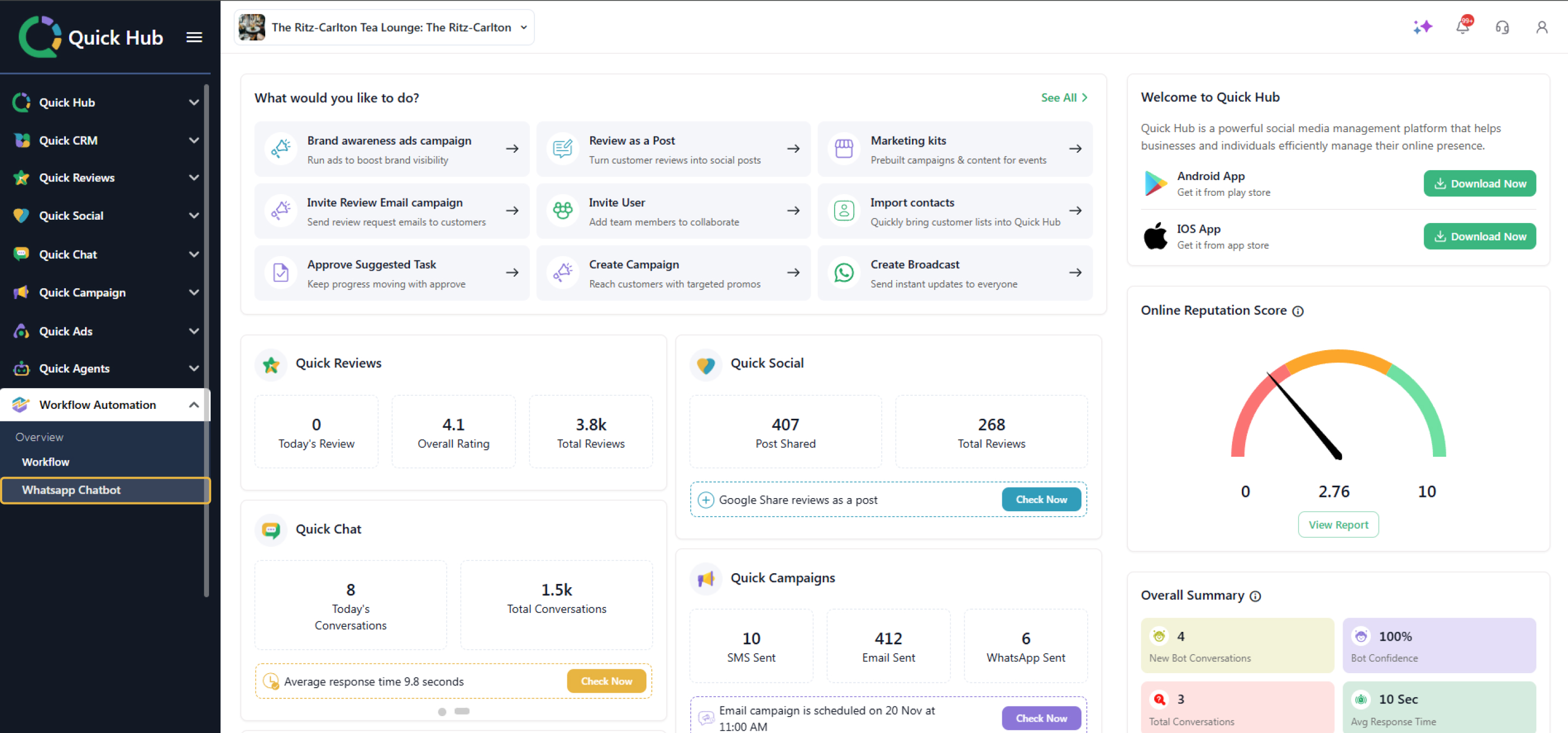 You can now automate messages and follow-ups on WhatsApp with Quick Hub’s WhatsApp workflow automation feature. Follow the steps below to set up your own chatbot: