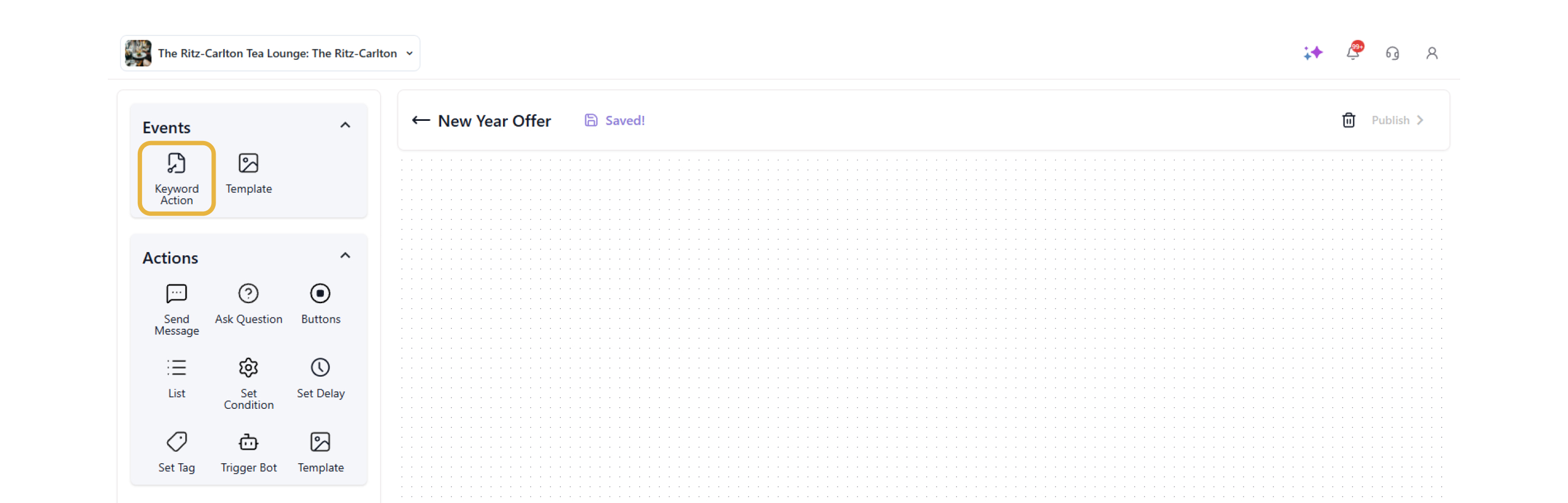 - Once you have completed the entire workflow, click ‘Publish.’