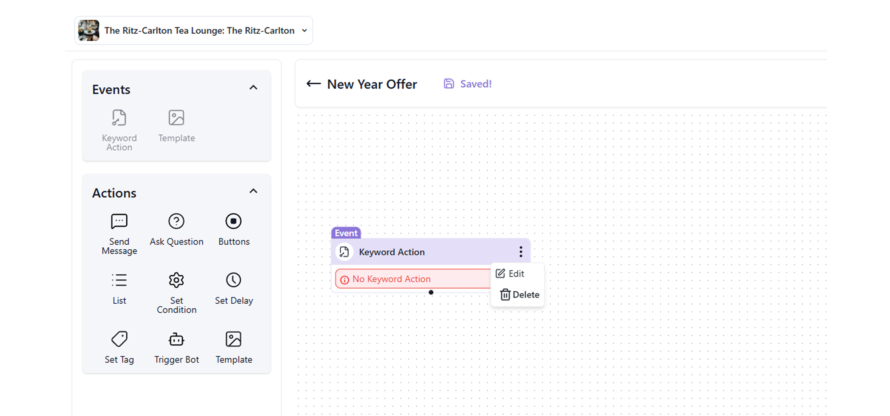 Click 'Keyword Action.'